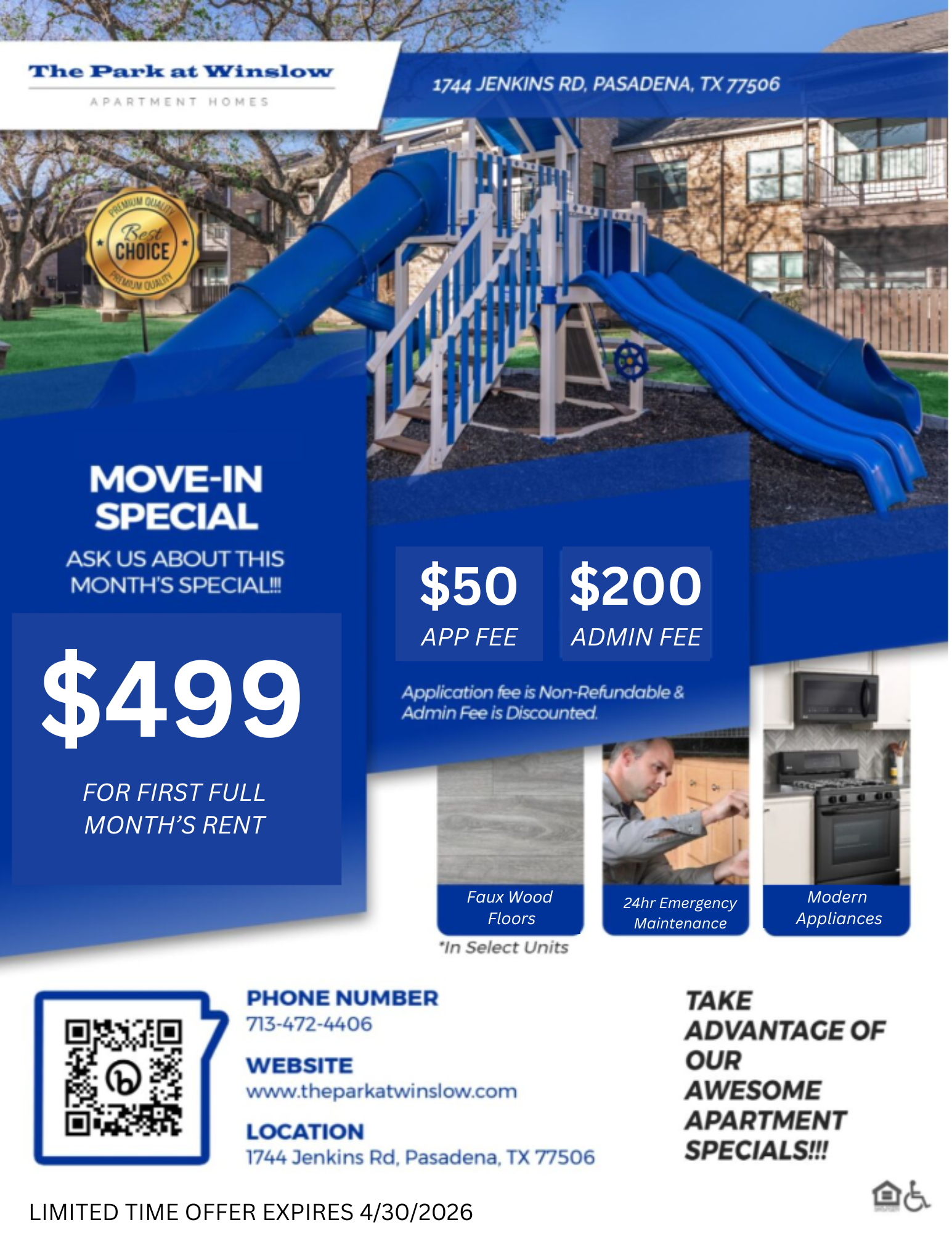 Spring is in full bloom! 🌷 Move into your new home this April and take advantage of our limited-time move-in specials. FIRST FULL MONTH'S RENT IS JUST $499 Fresh season, fresh start, fresh savings — don’t miss your chance to make your move! 🌼